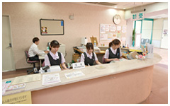 受付にて受診する診療科の番号札をお取りになり、診察申込書にご記入の上、保険証・各種受給者証と 共にご提出ください。(他院からの紹介状をお持ちの方はあわせてご提出ください)